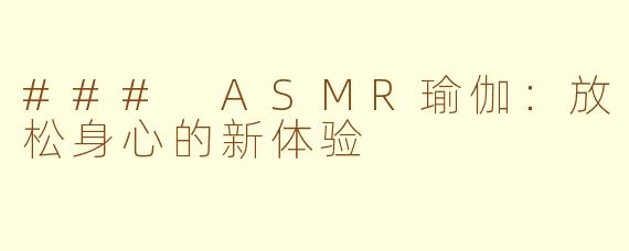近年来,ASMR(自主感知经络反应)在网络上引发热潮,而将ASMR与瑜伽结合的“ASMR瑜伽”更是为现代人带来了全新的放松体验。ASMR瑜伽结合了轻柔的声音和舒缓的瑜伽动作,让练习者在冥想中感受到深度放松。
