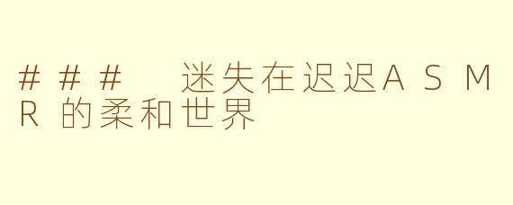 近年来,ASMR(自发性知觉经络反应)逐渐成为人们放松身心的重要方式。而在这个领域中,"迟迟ASMR"作为一种独特的风格,吸引了无数听众的关注。其内容通常以轻柔的声音和细腻的音效为主,创造出一种温暖而宁静的氛围,让人们在忙碌的生活中找到片刻的宁静。