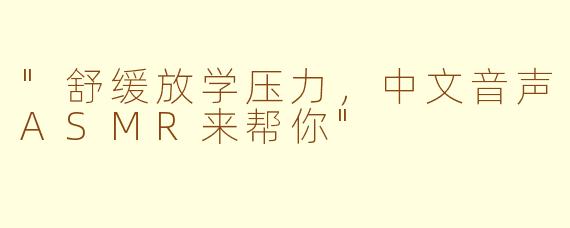 放学下课了,课业疲惫的身心,需要一种轻松的方式来放松。而中文音声ASMR(Autonomous Sensory Meridian Response)正是这种让人心情愉快轻松的方式。