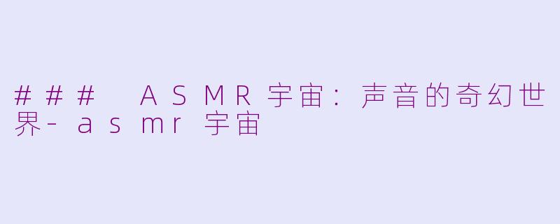 在这个快节奏的时代,ASMR(自主感官经络反应)逐渐走进了人们的视野。原本只是一种特殊的声音体验,随着越来越多的创作者加入,ASMR已发展成一个丰富多彩的宇宙。无论是轻声细语的耳边呢喃,还是轻敲物品的清脆声响,每一种声音都能引发听者身心的放松与愉悦。