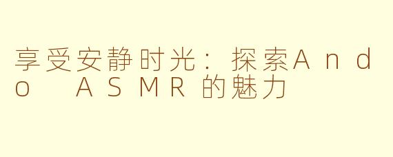 在现代社会的快节奏生活中,越来越多人开始寻求放松和减压的方法。而Ando ASMR作为一种新兴的放松方式,逐渐受到许多人的喜爱。ASMR,全称自主感觉经络反应(Autonomous Sensory Meridian Response),是一种通过特定的声音和视觉刺激引发的愉悦体验。