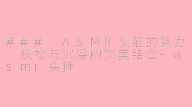 近年来,ASMR(自主感知经络反应)在网络上依然热度不减,越来越多的人开始关注这一现象。而“ASMR头箍”作为一种新兴的体验方式,凭借其独特的触觉与听觉效果,迅速俘获了众多粉丝的心。
