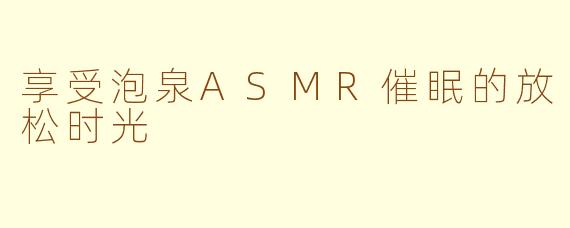 总的来说,泡泉ASMR催眠是一种值得尝试的放松方式,可以帮助人们远离烦恼,享受片刻的宁静和放松。在日常生活中,不妨抽出一点时间,体验泡泉ASMR催眠,让自己拥有一个更健康、更幸福的生活。