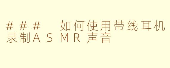 随着ASMR(自发性知觉经络反应)的流行,越来越多的人希望能够录制出高质量的ASMR声音。虽然不少人会使用专业设备进行录制,但其实带线耳机也能够刷出不错的效果。以下是一些简单的步骤和技巧,帮助你用带线耳机录制出令人放松的ASMR。