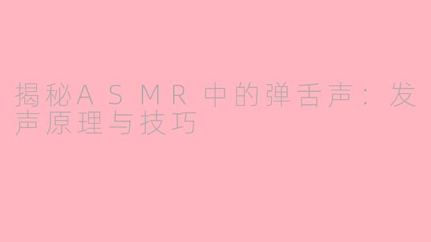 ASMR(自主感官经络反应)近年来受到越来越多人的喜爱,其中的弹舌声成为了许多ASMR视频的重要元素。弹舌声是通过舌头与上颚或牙齿之间快速的摩擦来产生的。这种声音可以带来舒缓的感觉,帮助人们放松和入眠。
