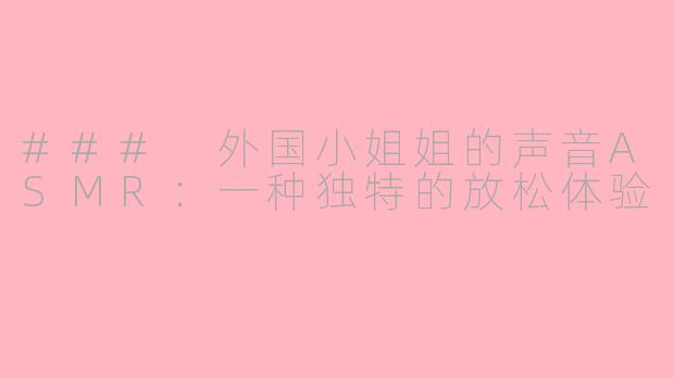 在当今快节奏的生活中,越来越多的人开始寻求放松和减压的方法。ASMR(自发性知觉经络反应)作为一种新兴的放松方式,逐渐受到大众的关注。其中,外国小姐姐的声音ASMR尤为受欢迎。