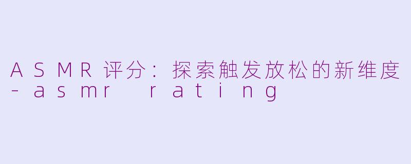 近年来,ASMR(自发性知觉经络反应)在网络上引起了广泛关注。越来越多的人通过观看ASMR视频来缓解压力,助眠,甚至提升专注力。而ASMR评分作为一种评估不同ASMR内容有效性的工具,逐渐被用户和创作者所关注。