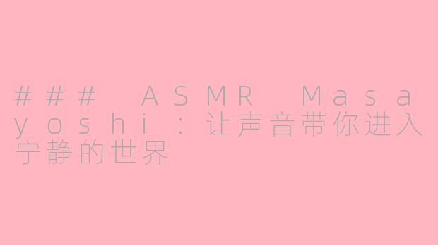 ASMR(自发性知觉经络反应)近年来在网络上掀起了一股热潮,而ASMR Masayoshi以其独特的魅力和精致的声音,引起了众多观众的关注。Masayoshi是一位以ASMR视频而闻名的内容创作者,他的声音柔和而富有感染力,能够让人心灵平静,忘却一切烦恼。