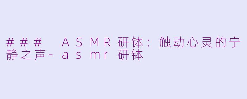 无论是使用传统的木制或陶瓷研钵,还是现代的玻璃材质,研钵所发出的每一种声音都有其独特的魅力。对于很多人而言,ASMR研钵不仅仅是一种声音的享受,更是一种情感的寄托,让我们在喧嚣的世界中找到一片属于自己的宁静天地。