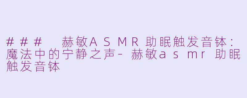 在忙碌的生活中,许多人难以入眠,亟需找到一条通往安宁的心灵之路。赫敏ASMR助眠触发音钵,便是一种独特的探索方式。赫敏这一角色,带有智慧与坚定,正如她所带来的助眠体验,能帮助我们寻找内心的平静。