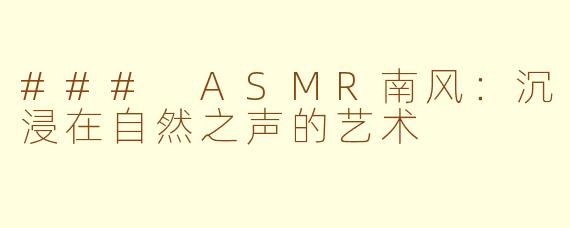 南风轻拂,带来温暖与宁静,如同ASMR(自主感官经络反应)的温柔刺激,令人心醉。ASMR南风,正是以自然为背景,通过细腻的声音捕捉,让听众感受到恬静与放松。清脆的树叶沙沙声,远处潺潺的流水声,以及温和的风声,交织成了一种独特的声音体验。