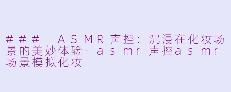 近年来,ASMR(自发性知觉经络反应)逐渐成为许多人释放压力和放松的一个新选择。在这个过程中,声音的细腻程度能够引导听众进入一个身临其境的世界。其中,声控ASMR场景模拟化妆则是一个特别受欢迎的主题。