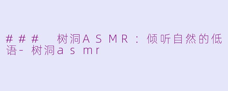 总之,树洞ASMR不仅是一种听觉享受,更是一种心灵的洗礼。在享受这些自然声音时,我们能够重新连接内心,找到生活的平衡与和谐。