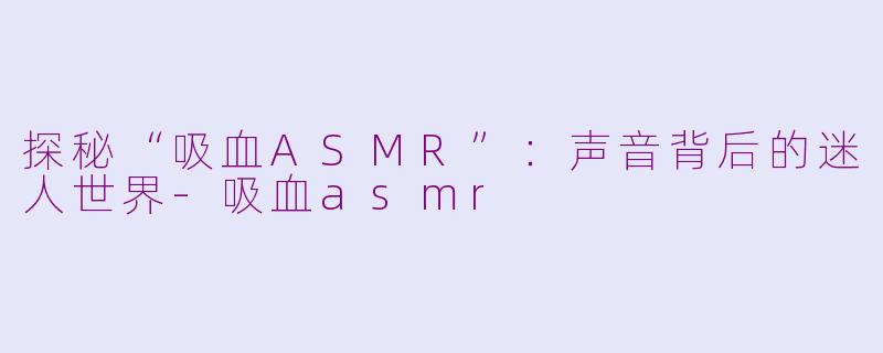 近年来,ASMR(自发性知觉经络反应)视频在网络上受到热捧,其中“吸血ASMR”尤为独特。尽管听起来颇为阴森,但实际上这种类型的ASMR视频旨在通过特定的声音效果和情境营造,带给观众一种宁静而愉悦的体验。