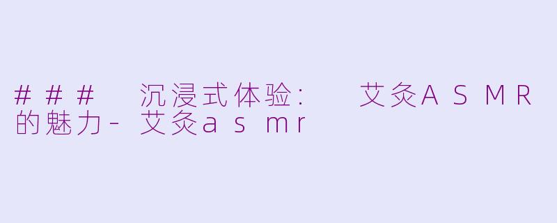 在现代快节奏的生活中,许多人寻求放松和减压的方法。而艾灸ASMR(自发性知觉经络反应),正好满足了这种需求。艾灸是一种传统中医理疗方法,通过点燃艾条,产生温热效应刺激经络,达到养生保健的目的。而ASMR则利用声音、视觉等元素,给人带来放松和愉悦的体验。