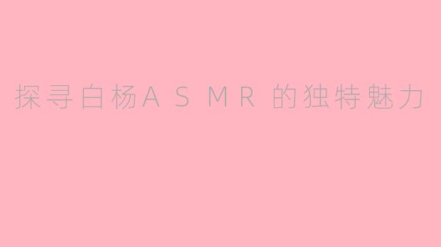 总之,白杨ASMR不仅是一种听觉享受,更是一种与自然亲密接触的方式。它让人们在喧嚣的世界中找到一片属于自己的宁静乐土。