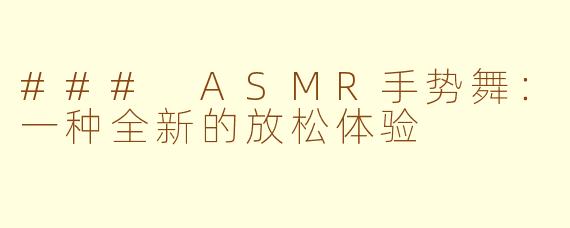近年来,ASMR(自主感官经络反应)越来越受到关注,它通过声音、视觉等多种刺激带给人们愉悦的感受。而ASMR手势舞,更是将这一概念拓展到了新的领域。