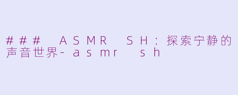 ASMR(自主感知经络反应)是一种通过特定声音和视觉刺激引发的放松体验。而“SH”则是指一些轻柔的“沙沙声”或轻声说话的声音,这些声音能够给听众带来愉悦、舒缓的感受。