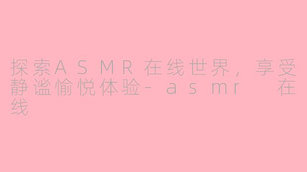 在ASMR在线世界中,每个人都可以找到自己喜欢的内容,体验属于自己的独特放松之旅。让我们一起探索ASMR在线世界,享受这份神奇的静谧愉悦体验。