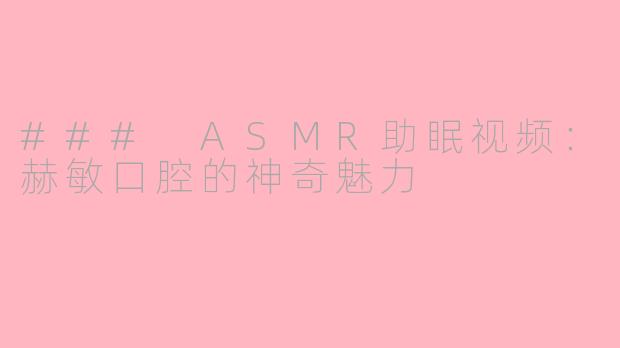 在当今快节奏的生活中,越来越多的人面临失眠问题。ASMR(自发性知觉经络反应)作为一种新兴的放松方式,受到了广泛关注。而赫敏口腔的ASMR助眠视频,更是成为许多人缓解压力、改善睡眠的首选。