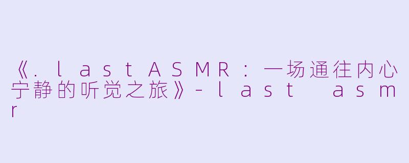 在数字时代喧嚣的缝隙中,ASMR(自发性知觉经络反应)以其独特的疗愈力量,为无数人提供了片刻的逃离与放松。而.lastASMR,作为这一领域的新兴探索者,正用细腻的声音设计重新定义“沉浸式体验”。