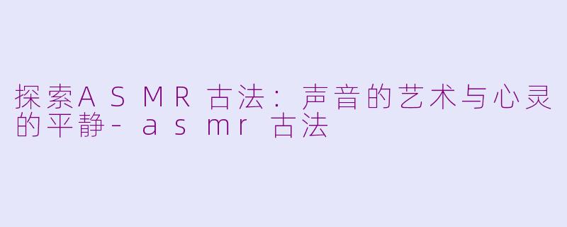 如今,ASMR不仅仅是一种放松的工具,更是一种连接自我与世界的方式。通过重新审视这些古法,我们不仅能更好地理解声音的力量,还能够在现代生活中寻找到心灵的宁静。让我们在快节奏的生活中,重拾这些古老的智慧,以声音为桥梁,探索更深层次的内心世界。
