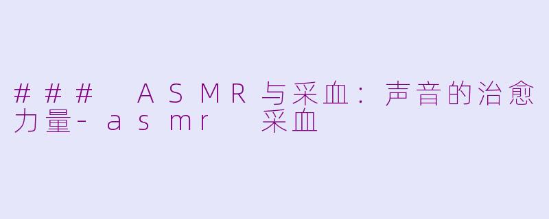 在近年来,ASMR(自发性知觉经络反应)逐渐成为一种受欢迎的放松和减压方式。而将ASMR与医疗过程结合,尤其是采血,成为了一个新兴的尝试。许多人在面对针头和采血时常常感到紧张和焦虑,而ASMR能通过细腻的声音帮助他们缓解这种情绪。