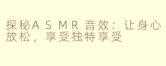 总的来说,ASMR音效作为一种放松技术,能够帮助人们减轻压力、舒缓焦虑,让身心得到放松。无论是在忙碌的工作中需要一段放松时光,还是在晚上难以入眠,ASMR音效都可能成为一种有效的调节方式。让我们一起尝试ASMR音效,享受它带来的独特体验吧!