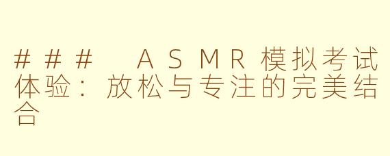 在现代社会,随着学习压力的增加,许多人开始寻求不同的方法来放松和提升专注力。而ASMR(自发性知觉经络反应)作为一种新兴的放松方式,逐渐走入了人们的视野。最近,一些创作者推出了“ASMR模拟考试”的视频,把ASMR与考试这一紧张场合结合在一起,为考生提供了一种独特的体验。