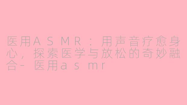 在快节奏的现代生活中,焦虑、失眠和慢性疼痛等问题困扰着许多人。传统的医疗手段虽然有效,但近年来,一种新兴的辅助疗法——医用ASMR(自发性知觉经络反应)逐渐进入公众视野。通过精心设计的声音和视觉刺激,医用ASMR为患者提供了一种非药物、无创的放松方式,甚至成为某些康复治疗中的辅助工具。