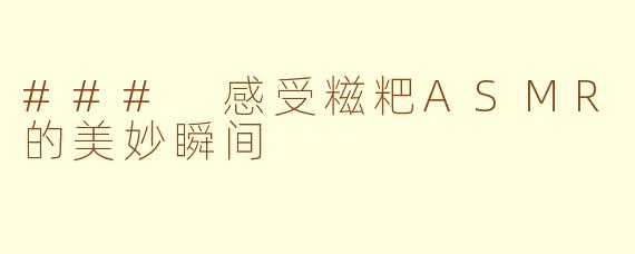 在这个快节奏的生活中,许多人开始寻求一种放松的方式,而糍粑ASMR正好满足了这一需求。ASMR(自发性知觉经络反应)是一种通过声音带来的愉悦体验,而糍粑的制作与品尝则为这一体验增添了独特的魅力。
