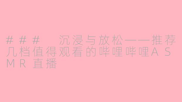在快节奏的生活中,ASMR(自主感觉经络反应)逐渐成为许多人放松身心、缓解压力的首选方式。在哔哩哔哩(B站)上,ASMR直播频道层出不穷,丰富多彩,以下是几档值得推荐的ASMR直播,希望能为你的放松时光增添愉悦。