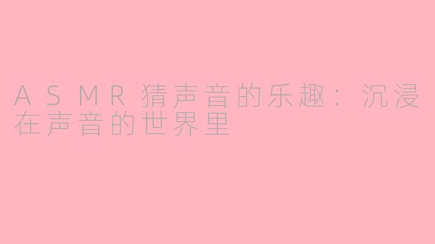 随着ASMR(自主感觉经络反应)越来越受到人们的关注,许多ASMR爱好者开始了一个有趣的游戏——“猜ASMR声音”。这种活动不仅增加了互动乐趣,也让人们更加深入地探索各种声音的魅力。
