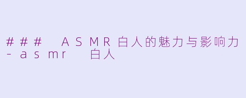 总之,ASMR白人不仅仅是声音的制造者,更是情感的传递者。他们的作品在社交媒体上产生了深远的影响,促进了人们对放松和自我关怀的重视。
