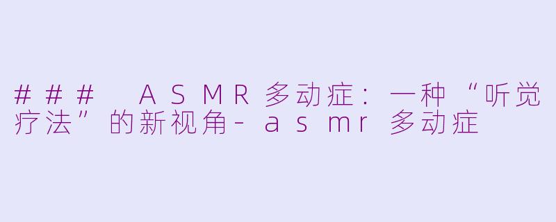 随着ASMR(自发性知觉经络反应)在网络上迅速走红,越来越多的人开始关注这一现象。ASMR通过轻柔的声音、细腻的触碰以及静谧的环境,带给听众一种愉悦的身心感受。然而,近年来,“ASMR多动症”这一概念开始引发讨论,指的是某些人在享受ASMR时,可能会感到躁动不安,无法完全放松。