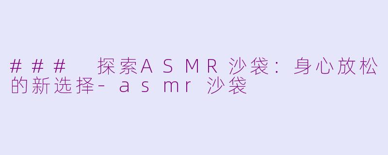 在现代生活的快节奏中,许多人面临着压力与焦虑,这时ASMR(自主感觉经络反应)成为一种新兴的放松方式。最近,ASMR沙袋作为一种新颖的助眠工具,逐渐受到人们的关注。