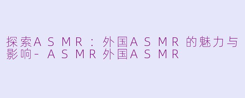 总之,外国ASMR的风靡不仅展现了文化创意的无限可能性,也为现代人提供了一种新的放松方式,值得我们去深入探索和体验。