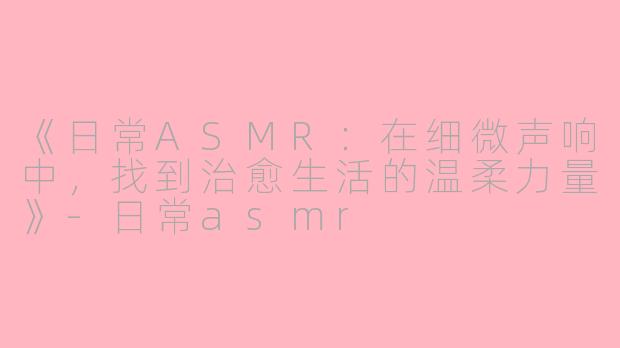 在快节奏的现代生活中,人们常常被焦虑和压力包围,而一种名为“ASMR”(自发性知觉经络反应)的体验,正悄然成为许多人日常放松的秘密武器。它通过轻柔的耳语、沙沙的翻书声、指尖敲击的节奏,或是雨滴落下的白噪音,触发大脑深处的愉悦感,带来瞬间的平静与治愈。