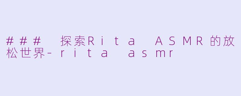 对于追求静谧与放松的人来说,Rita ASMR无疑是一个值得关注的频道。她的声音如同轻柔的风,拂面而来,让人心旷神怡。在快节奏的生活中,Rita的内容提供了一种难得的逃避,让人能够在片刻之间恢复内心的宁静。
