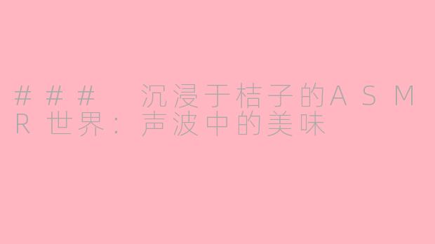 在这个快节奏的时代,桔子ASMR不仅是声音的享受,更是让我们暂时远离喧嚣、感受生活中细腻之处的方式。让我们一起在桔子的ASMR中,找到那份属于内心的宁静与快乐吧!