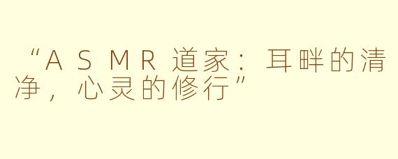 在快节奏的现代生活中,人们不断寻求放松与内心平静的方式。ASMR(自发性知觉经络反应)以其轻柔的声音和细腻的触感,成为许多人缓解压力的选择。而当ASMR与道家文化相遇,便诞生了一种独特的疗愈体验——“ASMR道家”。