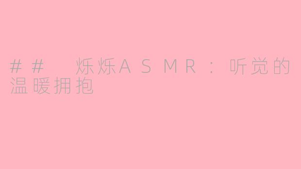 在这个快节奏的生活中,人们常常感到压力和焦虑,而“烁烁ASMR”则如同一股清流,带来心灵的慰藉。ASMR(自发性知觉经络反应)是一种通过轻声细语、耳语、物体碰撞声等声音刺激,触发身体和心理上的放松感。而“烁烁ASMR”以其独特的声音和风格,在广大听众中赢得了良好的口碑。