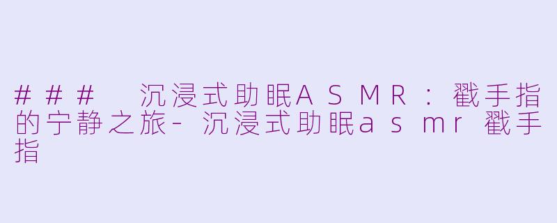 在快节奏的现代生活中,许多人面临着失眠的问题,寻找有效的助眠方法成了他们的重要任务。其中,沉浸式助眠ASMR(自主感觉经络反应)正在受到越来越多人的关注。尤其是“戳手指”这一独特的声音,因其独特的触觉和听觉体验,成为许多ASMR爱好者的首选。