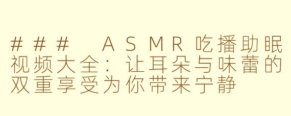 随着生活节奏的加快,许多人面临着失眠和焦虑的问题。为了改善这些状况,ASMR(自发性知觉经络反应)视频逐渐受到欢迎,其中的吃播内容更是成为了一种独特的助眠方式。ASMR吃播视频通过细腻的声音和诱人的画面,为观众带来一种身临其境的体验。