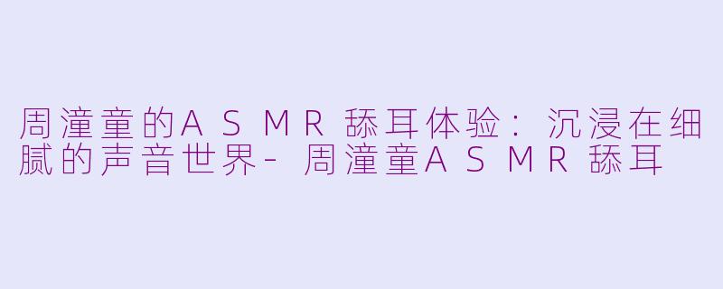 在如今的网络世界中,ASMR(自发性知觉经络反应)逐渐成为一种受欢迎的放松方式。周潼童以其独特的舔耳ASMR风格,吸引了众多听众的关注。她那轻柔的声音和细腻的细节,让人仿佛置身于舒适的氛围中,感受到身心的放松。