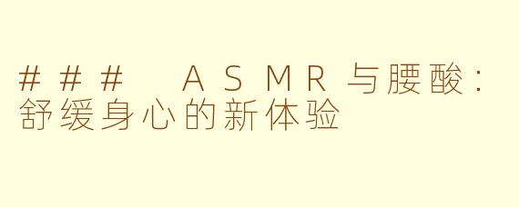近年来,ASMR(自发性知觉经络反应)逐渐成为一种流行的放松方式。许多人通过耳机听取柔和的声音和细腻的触感,来缓解压力和焦虑。然而,随着生活节奏的加快,很多人也开始面临腰酸的问题。这时,ASMR或许能为我们提供一种独特的舒缓体验。