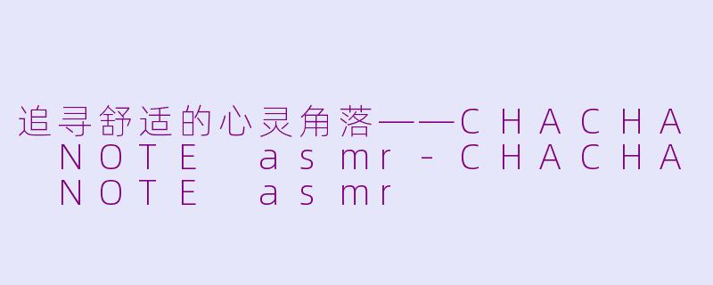 近年来,随着asmr(Autonomous Sensory Meridian Response)在网络上的流行,人们开始寻找各种方式来获得放松和舒适的体验。而在这个看似嘈杂的世界中,CHACHA NOTE asmr 成为了一片安静的港湾,为人们提供了一种独特的放松方式。