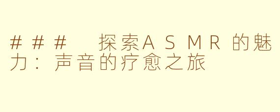 随着网络的迅速发展,ASMR(自发性知觉经络反应)作为一种新兴的听觉体验,逐渐走入了人们的生活。这种独特的声音艺术,通过轻柔的耳语、细腻的敲击声或是轻轻的刷子声,能够给人带来一种深度的放松和愉悦感。许多人在繁忙的生活中,借助ASMR来减轻压力、帮助入眠,甚至提升专注力。