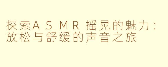 在当今快节奏的生活中,越来越多的人开始寻求一种放松和舒缓身心的方式,而ASMR(自发性知觉经络反应)现象正好应运而生。ASMR摇晃,作为其中的一种表现形式,以其独特的声音效果吸引了众多爱好者的关注。