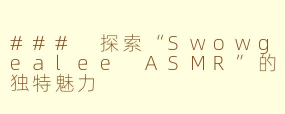 在当今的网络时代,ASMR(自主感觉经络反应)已经成为一种受欢迎的放松方式。近年来,“Swowgealee ASMR”这一频道以其独特的风格吸引了许多观众。在这里,观众们可以聆听到各种声响,从细腻的耳语到自然的环境声,每个音效都经过精心设计,旨在带给人们深度的放松体验。